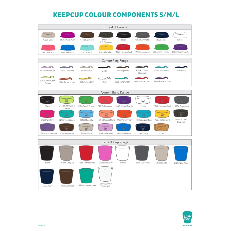 Plasten i KeepCup är BPA-fri, giftfri och tillverkad i återvinningsbar polypropenplast. KeepCup tål rengöring i diskmaskin och uppvärmning i mikrovågsugn. KeepCup Brew finns i tre storlekar Small (23cl), Medium (34cl) och Large (45cl).
